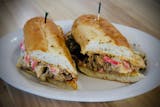 Pulled pork, amarillo sweet plantains, cheddar, pickled red onion, creole aioli. Served on toasted telera roll.